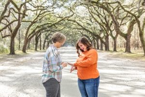 Alisa had already popped the question in Virginia and had been patiently (and anxiously!) waiting for Ashley to do the same. When Ashley called me, I knew this one was going to be special. They traveled up from Florida, and together we picked the dreamy Wormsloe Historic Site for the big moment — those towering oak trees dripping in Spanish moss never disappoint.